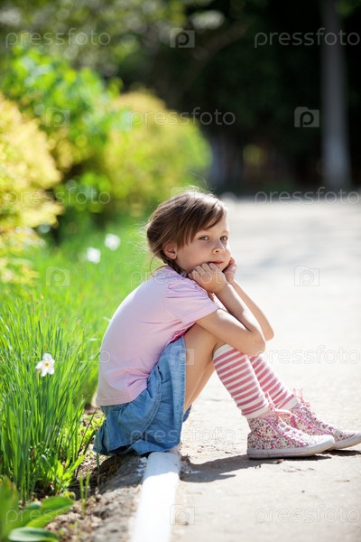 Портрет скучающей девочки в парке