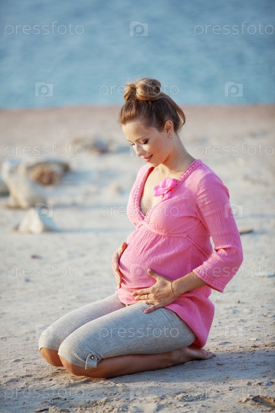 Портрет беременной женщины на пляже