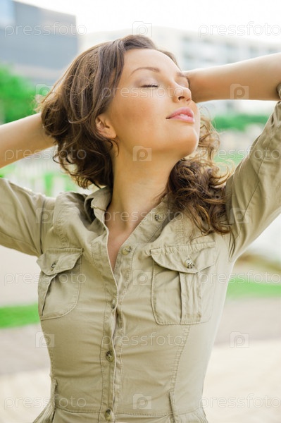 Портрет красивой молодой женщины на открытом воздухе