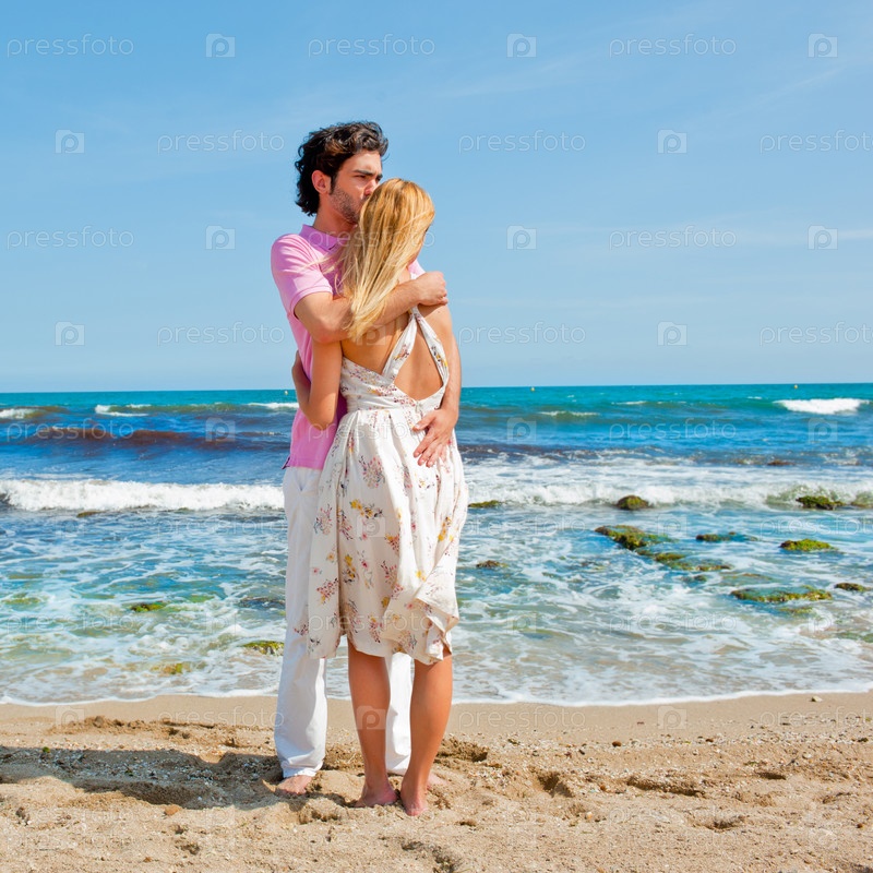 Молодая счастливая пара на пляже