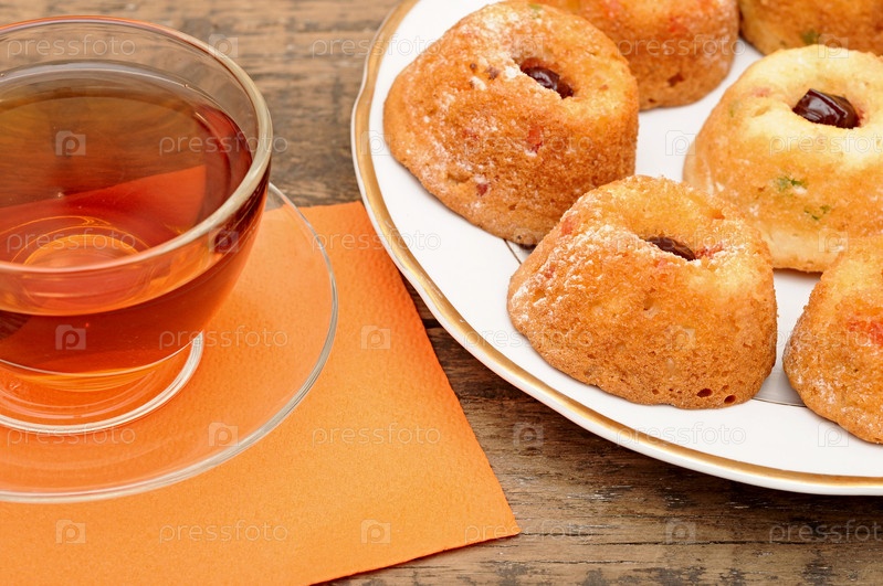 Чай с кексами на деревянном столе
