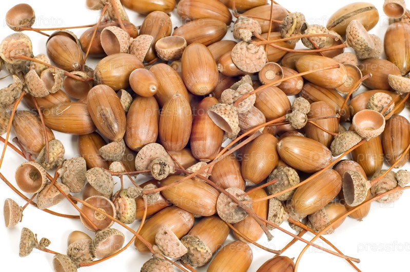 Куча желудей на белом фоне