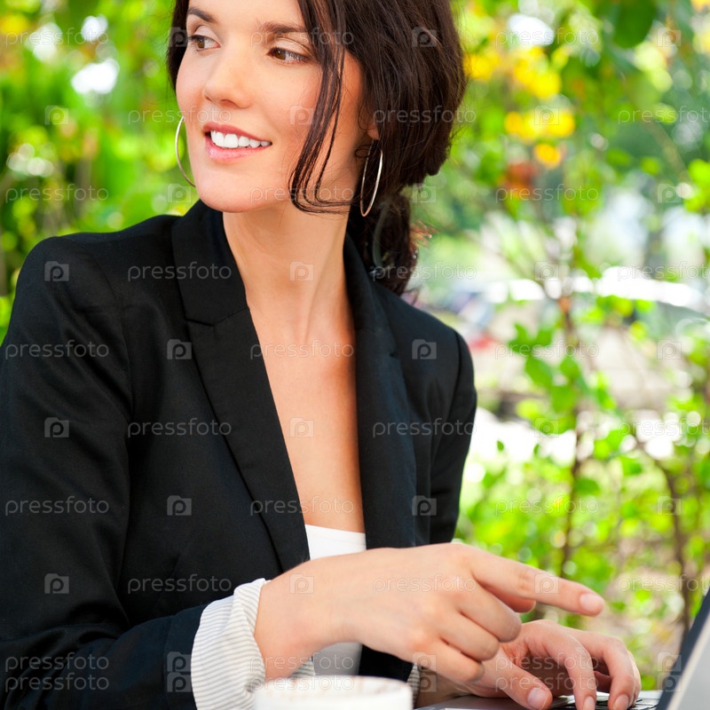 Деловая женщина с ноутбуком на открытом воздухе