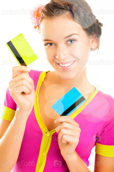 Красивая женщина с двумя кредитными карточками