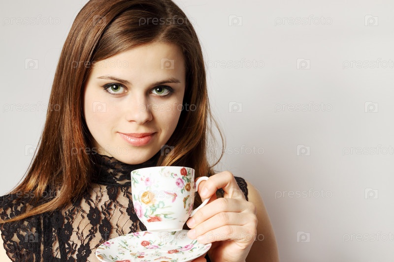 Молодая женщина держит чашук с чаем
