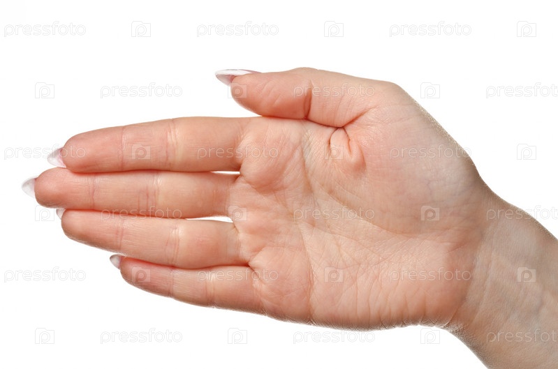 Знак женской рукой на белом фоне