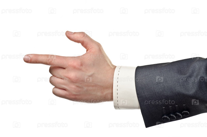 Деловой человек указывает пальцем, изолировано на белом фоне