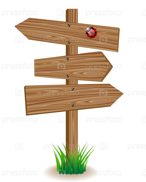 Деревянные вывеска с стрелками на зеленой траве