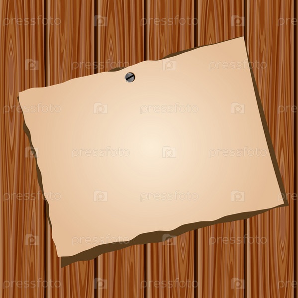 Старый пустой лист бумаги на деревянной стене