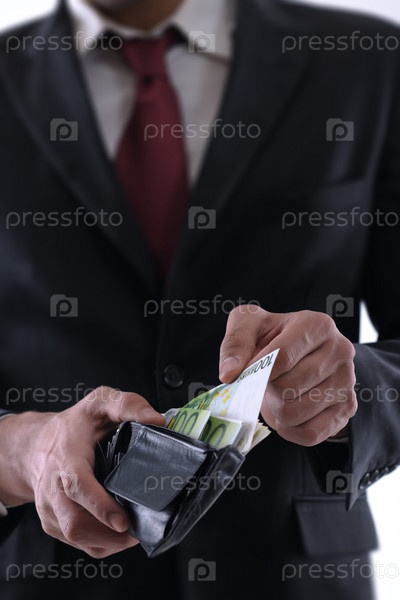 Деловой человек с бумажником в руках