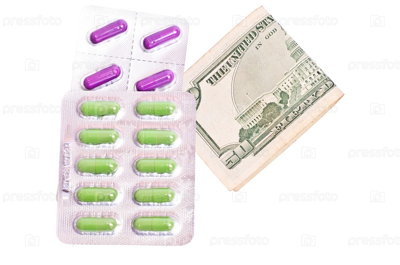 Зеленые и красные таблетки с долларами, изолированными на белом