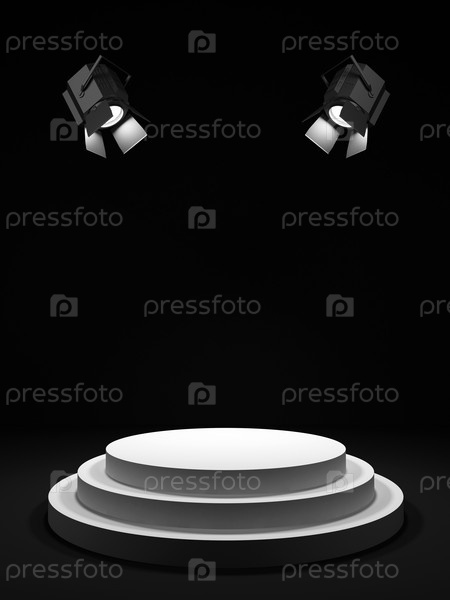 Два прожектора освещают маленькую круглую сцену в темноте