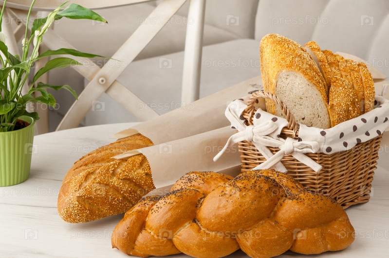 Хлеб в плетеной корзине