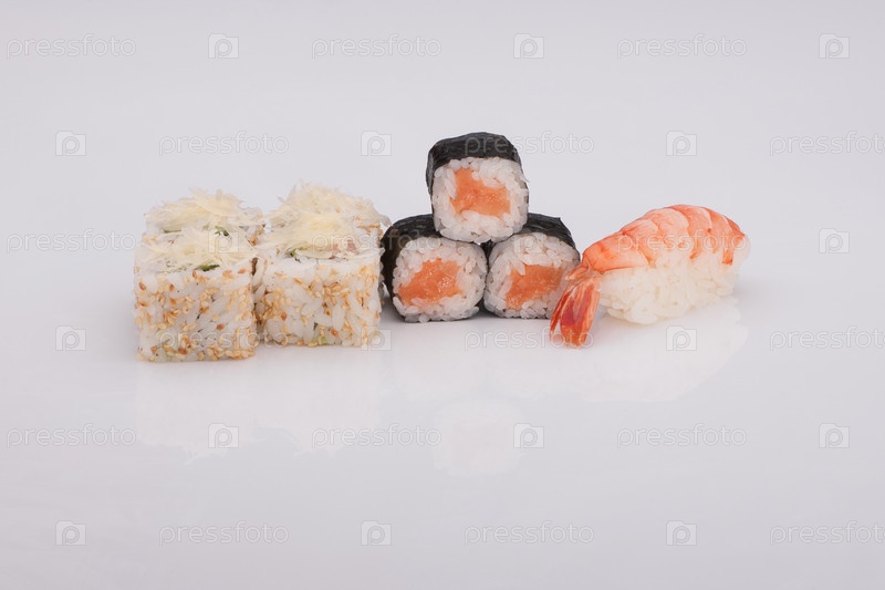 Ассортимент суши на белом фоне