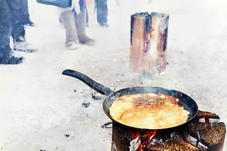 Приготовление блинов на огне