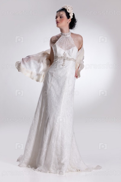 Молодая привлекательная женщина, одетая в модную ручную одежду на изолированном фоне