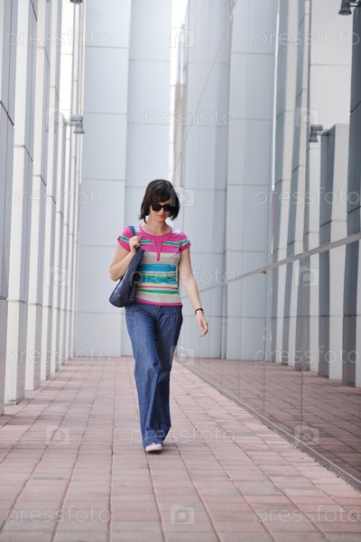 Молодая женщина на улице современного города