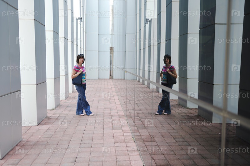 Молодая женщина на улице современного города