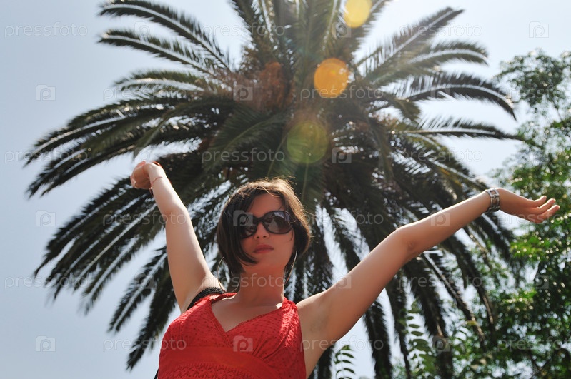 Девушка на фоне пальмы