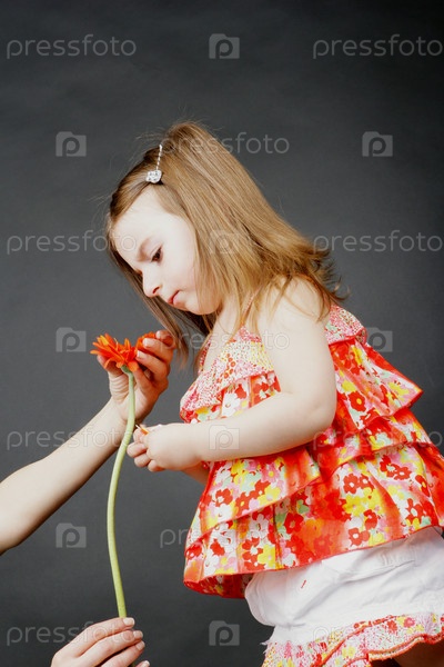 Маленькой девочке протягивают цветок