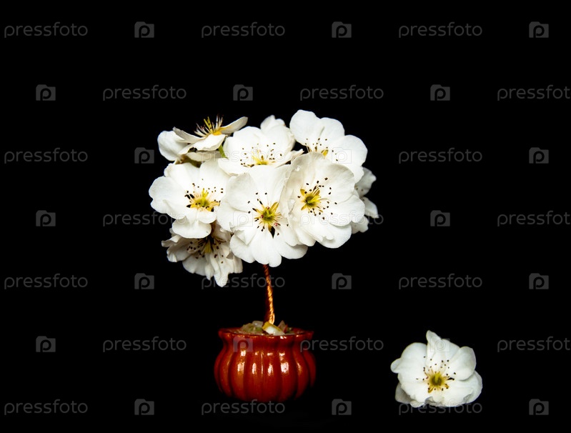 Крошечное цветущее дерево изолировано на черном фоне