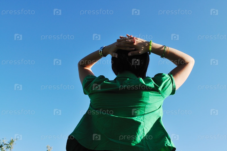 Молодая женщина на фоне неба
