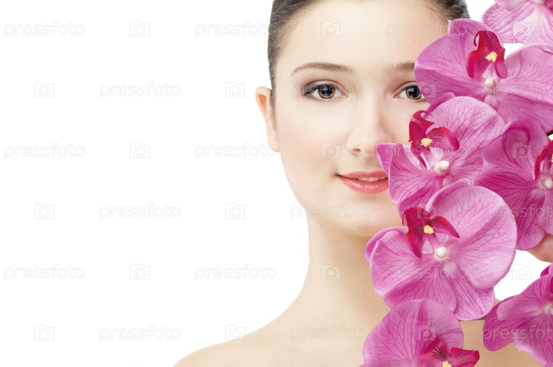 Красивая цветочная девушка на белом фоне