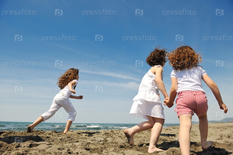Счастливые дети играют на пляже