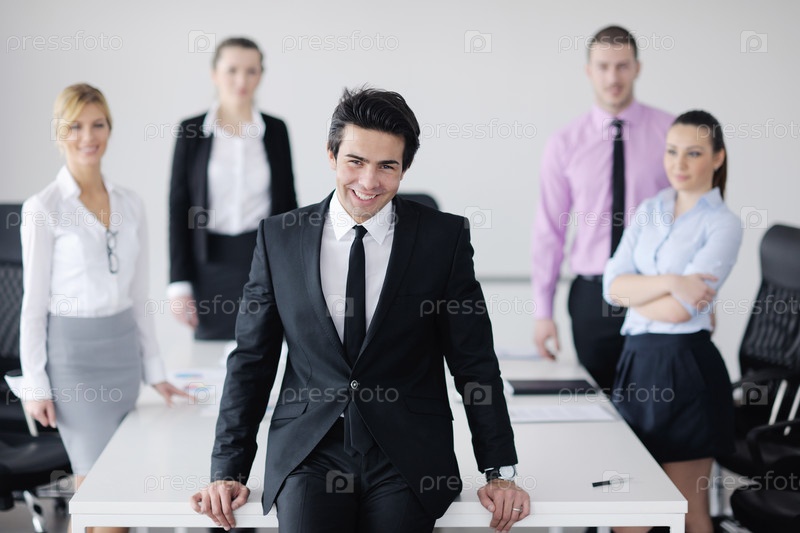 Уверенный молодой человек на собрании с коллегами