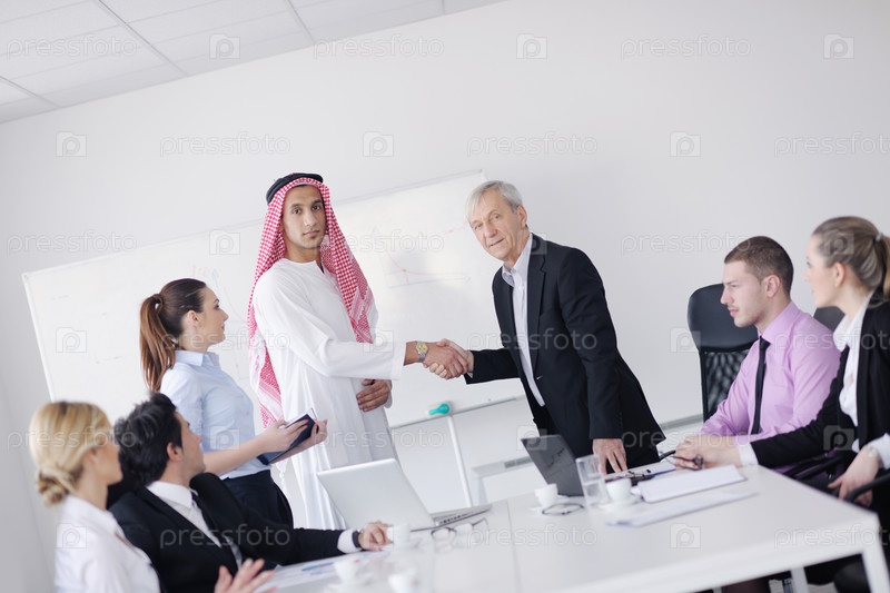 Встреча арабского бизнесмена с коллегами на совещании