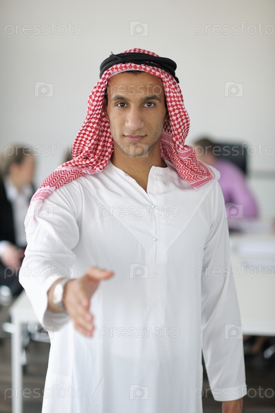 Красивый молодой араб на деловой встрече с предпринимателями