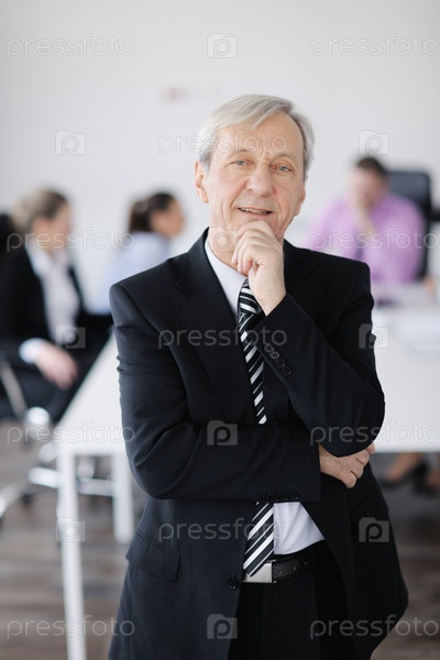 Пожилой деловой мужчина в его коллеги в офисе