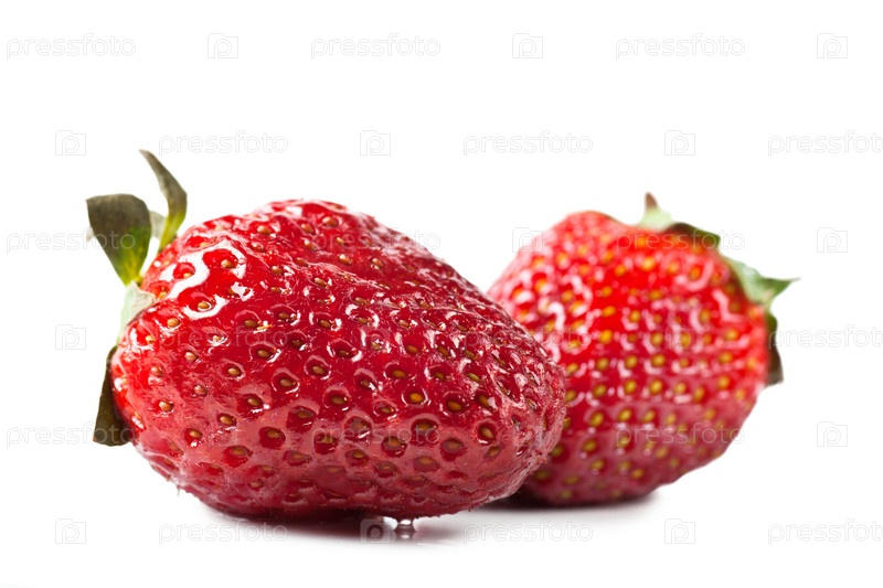Две ягоды клубники на белом фоне