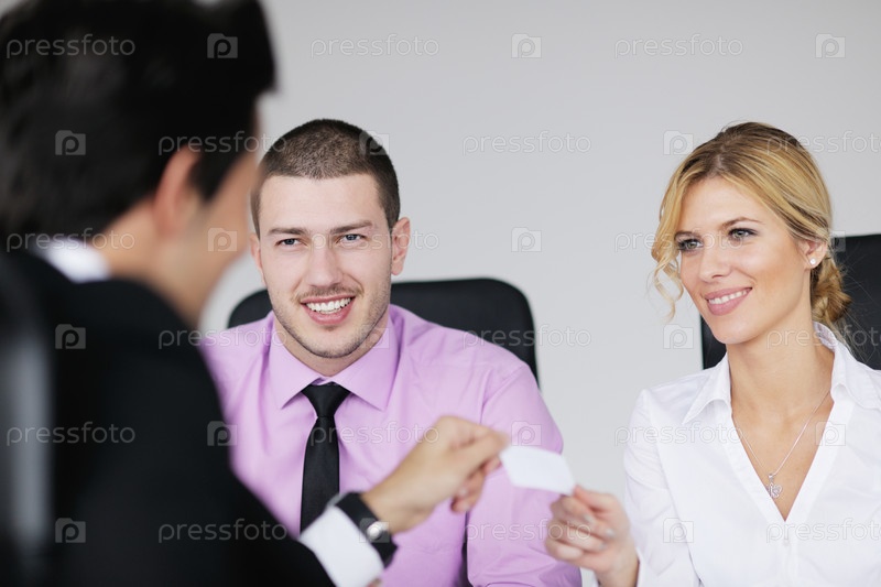 Молодые деловые люди обмениваются контактами