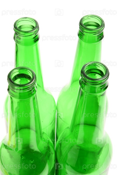 Пустая бутылка из зеленого стекла на белом фоне