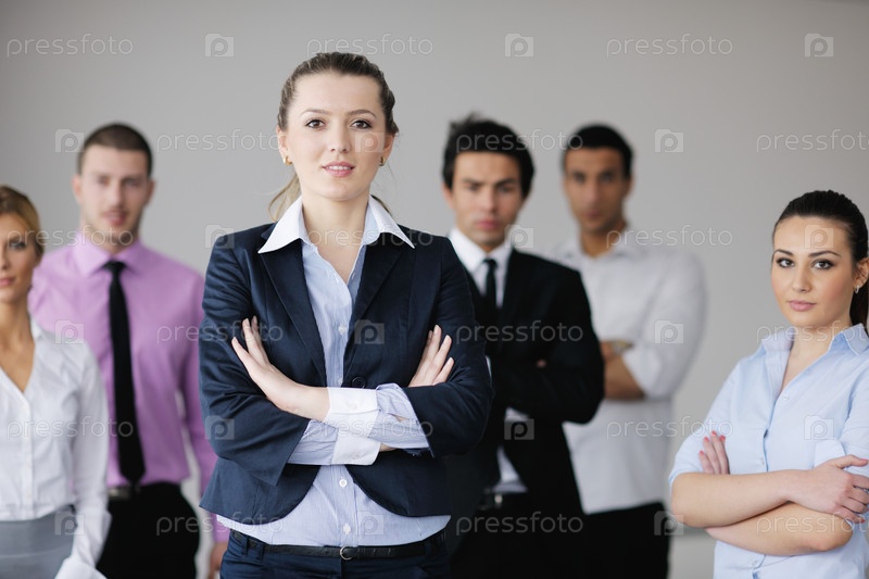 Молодая деловая женщина на фоне своих коллег
