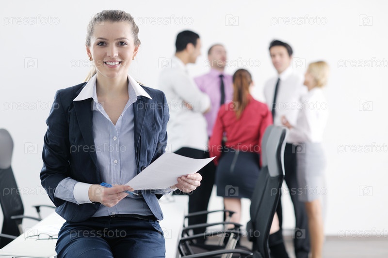 Молодая деловая женщина на фоне своих коллег