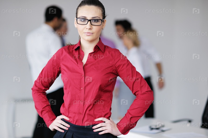 Молодая деловая женщина на фоне своих коллег
