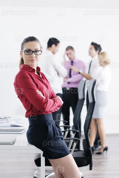 Молодая деловая женщина на фоне своих коллег