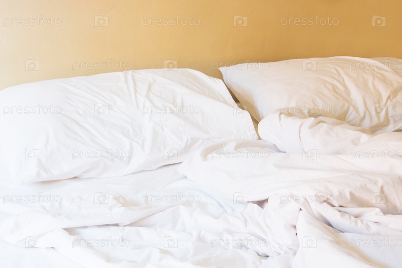 Белые подушки на кровати