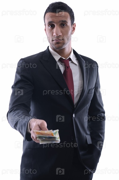Портрет успешного бизнесмена с деньгами в руке