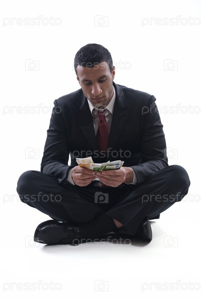 Портрет делового человека с деньгами, изолирован на белом фоне