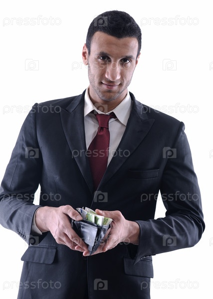 Портрет делового человека с деньгами, изолирован на белом фоне