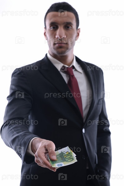 Портрет делового человека с деньгами, изолирован на белом фоне