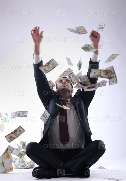 Молодой бизнесмен под денежным дождем