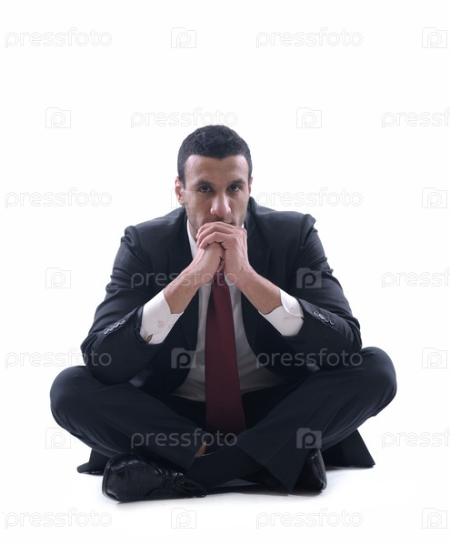 Портрет молодого делового человека, сидящего на полу