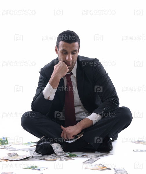 Портрет делового человека с деньгами, изолирован на белом фоне