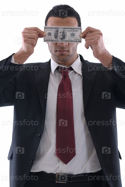 Бизнесмен закрывает лицо бумажной купюрой