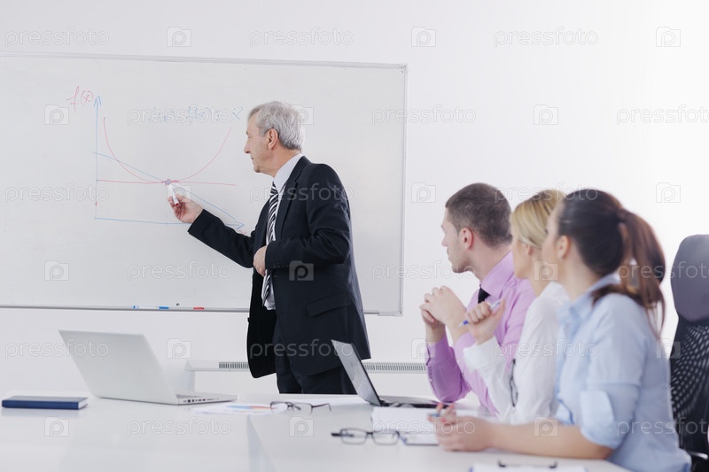 Опытный бизнесмен проводит бизнес встречу в офисе