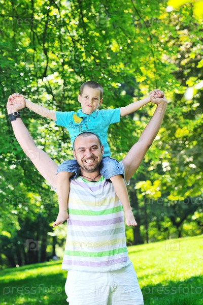 Отец с сыном в летнем парке